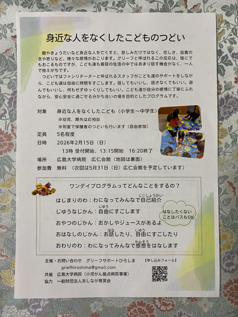 ☆グリーフサポートひろしま ワンデイプログラムのご案内☆